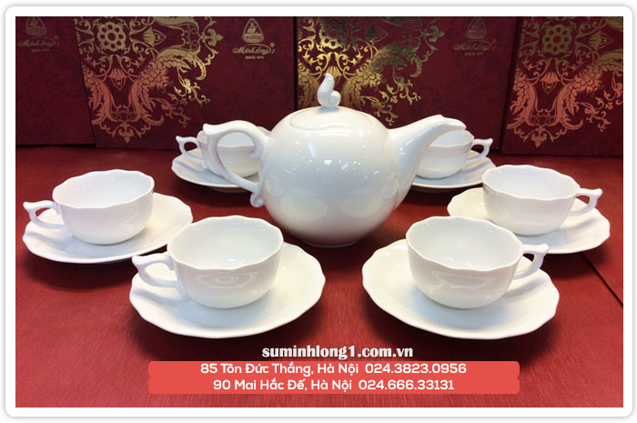 Bộ ấm trà (bộ tách trà) Gốm sứ Minh Long Mẫu đơn trắng 0.7L:
