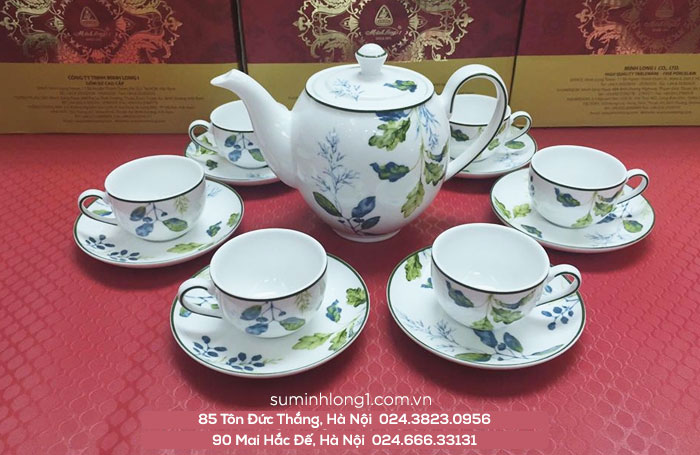 Mô tả sản phẩm gốm sứ Minh Long 1 : Bộ Trà 0.8L Lá Xanh gốm sứ Minh Long 1 gồm :